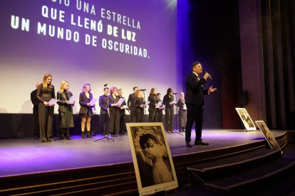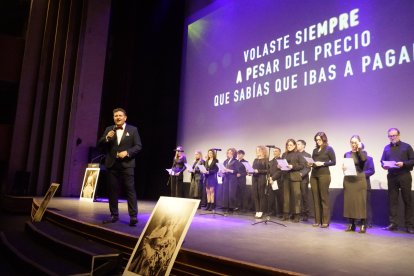 David Miralles y la Coral San Pío X, en el escenario del Maestro Padilla, interpretando en directo la canción 'Que nadie olvide tu nombre', dedicada a Concha Robles