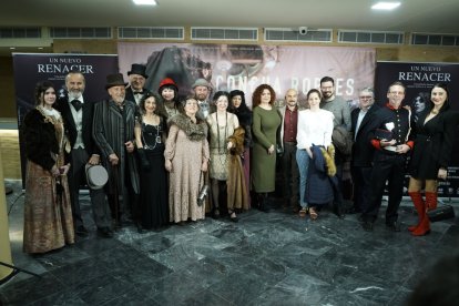 La actriz María José Montero y figurantes vestidos de época por Leonardo Giménez (director de arte del documental)