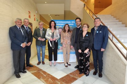 J. de la Cruz, delegado de Salud; Á. Escobar, vicepresidente de la Diputación de Almería; Mª del Mar Vázquez, alcaldesa de Almería; Mª Carmen Castillo, consejera de Educación; A. Hernando, Secr. de Estado de Telecomunicaciones; e I. Parras, de Asalsido.