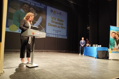 Una de las premiadas con el Down de Oro de Salud, durante su discurso tras recibir el premio.