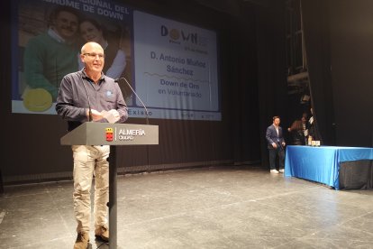Antonio Muñoz, premiado con el Down de Oro de Voluntariado, durante su discurso tras recibir el premio.