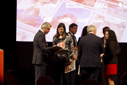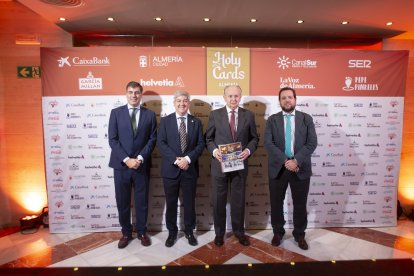 José Rafael Soto, presidente de la Agrupación, con Juan Carlos Ramos Picchi y Javier Ayala junto al gerente de LA VOZ y SER Almería, Ricardo Céspedes.