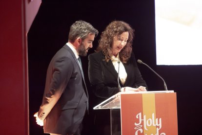 Rafael Ruiz, gerente de Holy Cards, junto a la alcaldesa de Almería, María del Mar Vázquez.