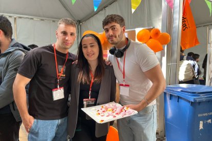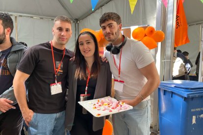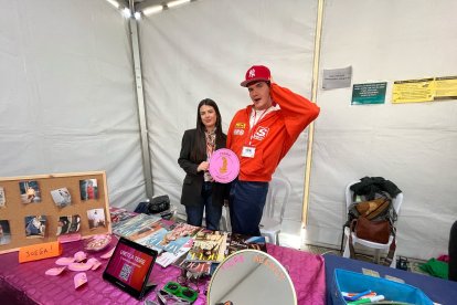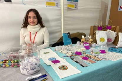 Una joven emprendedora, creadora de Universitas League, en su stand que incluía DJ.