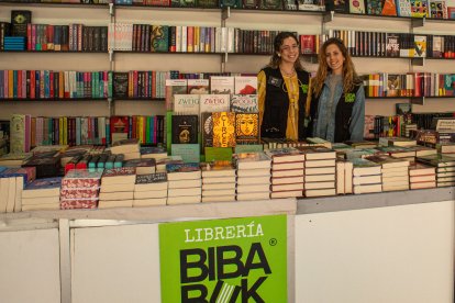 Sarah y Loli, en la caseta de la Librería Bibabuk