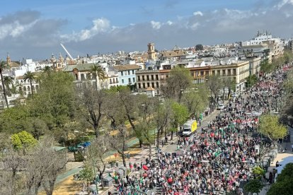 Miles de personas han salido a las calles de Sevilla este sábado para denunciar lo que consideran un proceso de desmantelamiento del sistema sanitario público en Andalucía. Convocados por CCOO, CSIF, UGT, SATSE y Marea Blanca, junto a una veintena de colectivos ciudadanos, asociaciones y partidos políticos, los manifestantes reclamaron un giro urgente en la política sanitaria del Gobierno de Moreno Bonilla.