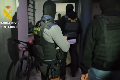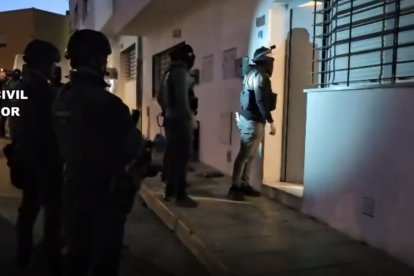 Agentes de la Policía Nacional y Guardia Civil coordinan movimientos durante el asalto a varias viviendas sospechosas.
