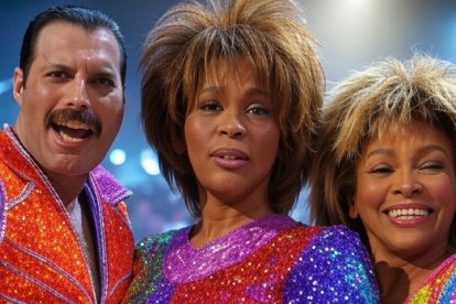 Recuerdo para artistas como Queen, Whitney Houston y Tina Turner (en la imagen, generados por IA). El viernes 11 a partir de las 20:30 horas en la sala Berlín Social Club de Almería.