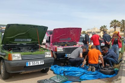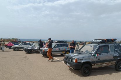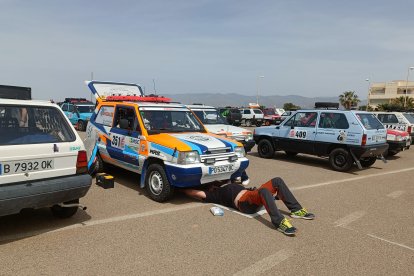 Los Fiat Panda y Seat Marbella participantes se aglomeran en las cercabías del Barceló Cabo de Gata para pasar la revisión antes de embarcarse en la prueba.