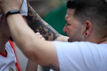 Mirando al cielo, lleno de nubes, pero con una multitud durante todo el recorrido. La Borriquita abría a las diez de la mañana un Domingo de Ramos incierto en lo meteorológico pero en el que Almería respondió echándose a la calle para ver la primera cofradía que pasa por la carrera oficial de la Semana Santa de Almería en este 2025.
