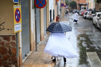 Primero se atrasó desde las 15:00 horas a las 17:00 horas, con la intención de darle margen a la lluvia para que desapareciera igual que había aparecido. Pero a las 17:00 se dió un ultimátum: tal y como anunciaba el teniente de hermano mayor de la Estrella en la iglesia parroquial de San Isidro Labrador, se daba media hora más de margen, y nada más. Si a las 17.30 horas seguía lloviendo, se suspendía la salida.