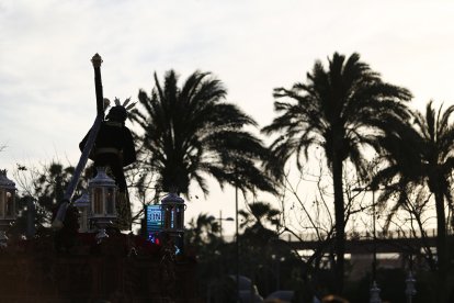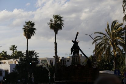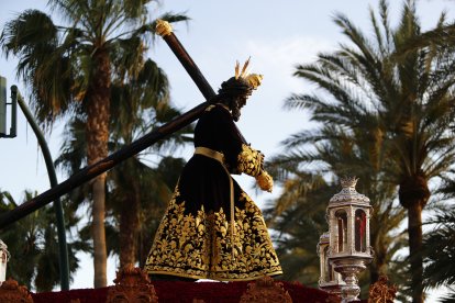 Si el domingo fueron las nubes y la lluvia las protagonistas inesperadas (y nunca deseadas) de un Domingo de Ramos que dejó sin salir a la Estrella, el Lunes Santo ha estado marcado por fuertes rachas de viento. El aviso amarillo no impidió que, desde El Zapillo, el Gran Poder saliera a hacer su estación de penitencia.