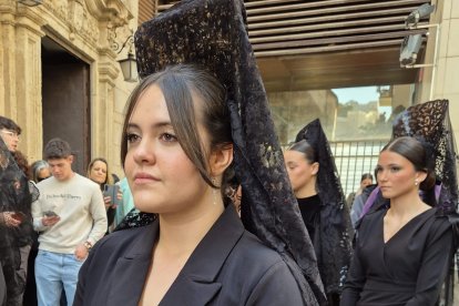Dos jóvenes mantillas antes de la salida de la Cofradía de Angustias