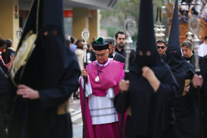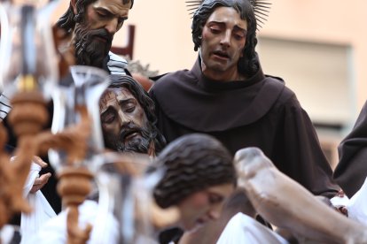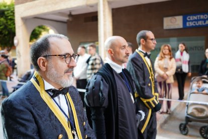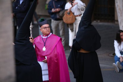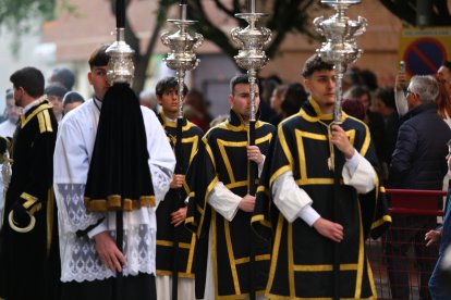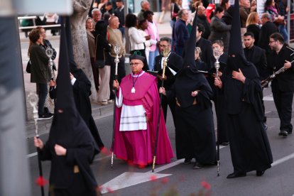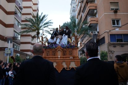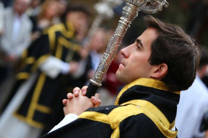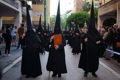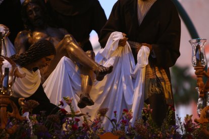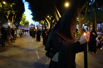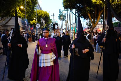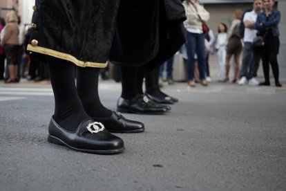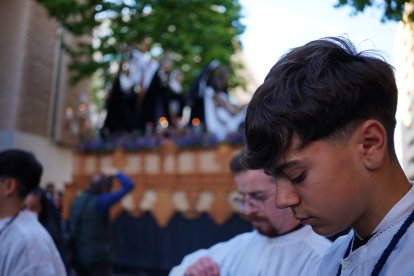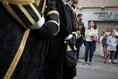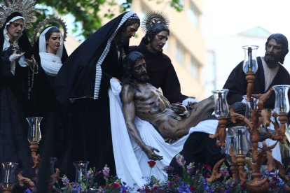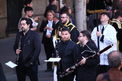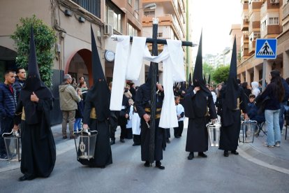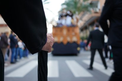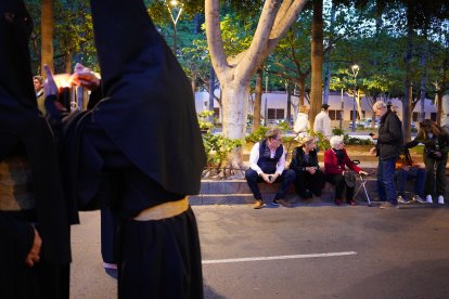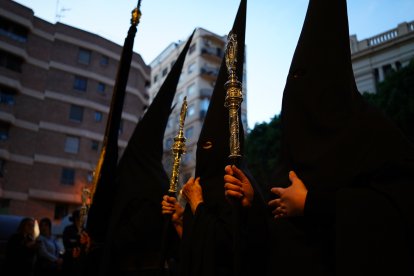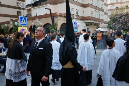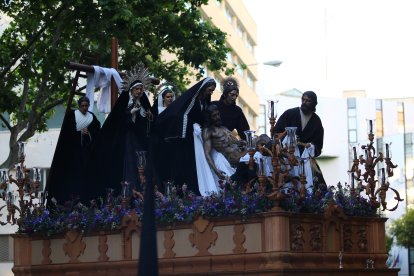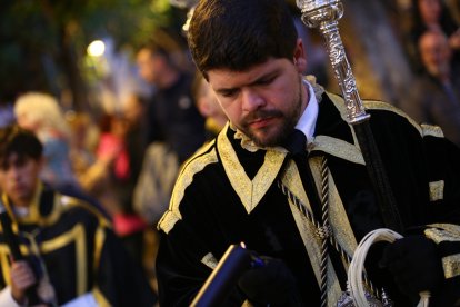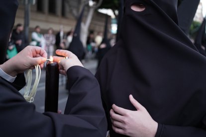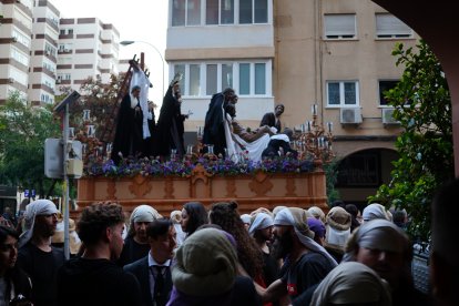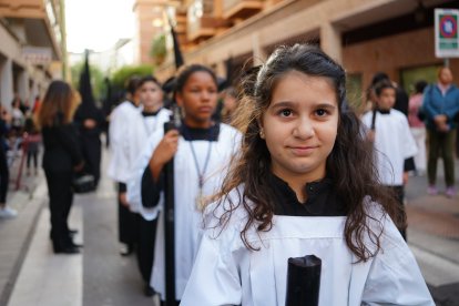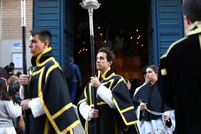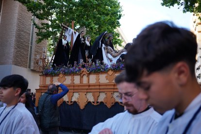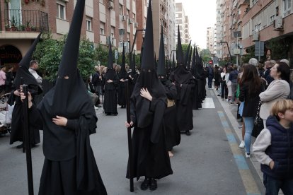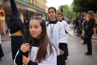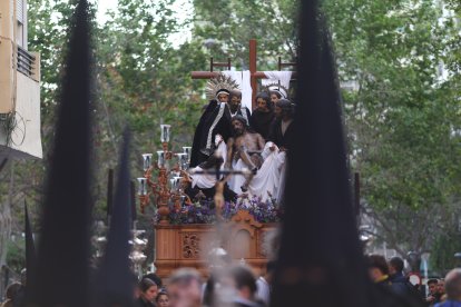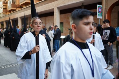 Con el ya casi tradicional viento que se hace presente cada Viernes Santo en Oliveros a la hora de la salida, la Hermandad de la Caridad hacía su salida desde la iglesia parroquial de Santa Teresa. El inconfundible sonido de la campana del muñidor, las voces de Anacrusa y la seriedad del cortejo fueron protagonistas un año más de esta cofradía de un solo paso: el traslado al sepulcro del Cristo de la Caridad.