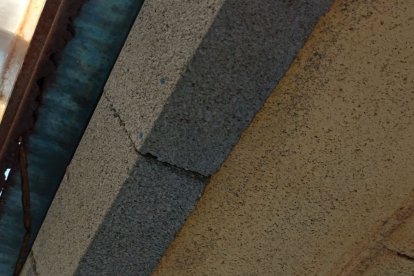 La grada presenta butacas y tornillos que sobresalen del cemento.