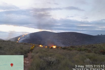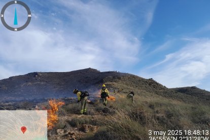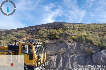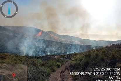 Un incendio forestal permanece activo en el paraje El Pocico de Huércal de Almería desde las 5:30 horas de este sábado.