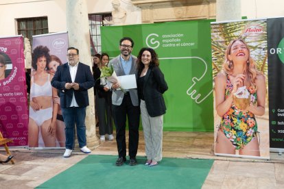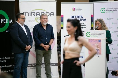 María del Mar López, diputada provincial; Juan Manuel Rodríguez, miembro del comité científico de la AECC; y Cristóbal Díaz, director de la Escuela de Artes.