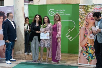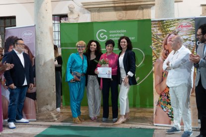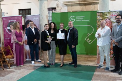 Victoria, Rosario, Susana, Begoña, Cristina, Leonor y Conchi, junto a Magdalena Cantero, presidenta de la AECC de Almería.