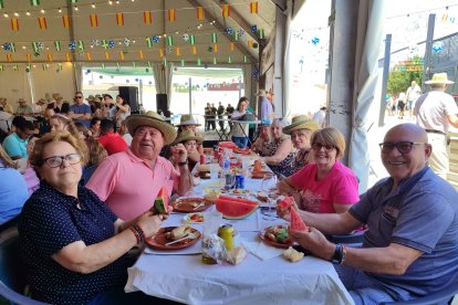 Familia Gómez comiendo en las Fiestas de Santa María del Águila.