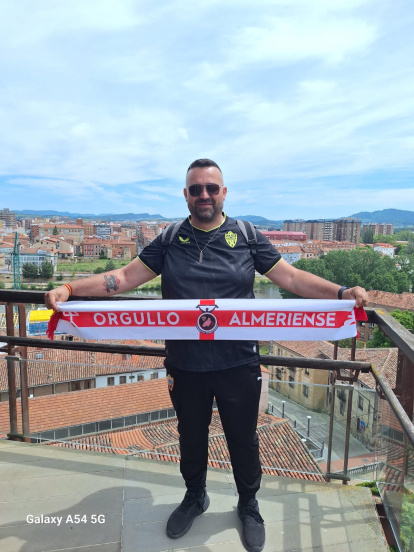 José Manuel Lermos, presidente de la Peña Orgullo Almeriense, en el Castillo de Miranda de Ebro.