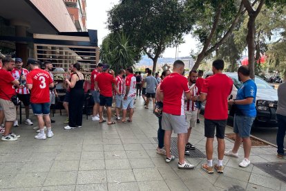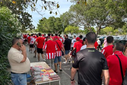 La afición rojiblanca ha llenado de color los aledaños del UD Almería Stadium en la previa del partido definitivo que enfrentará al conjunto almeriense contra el Tenerife.