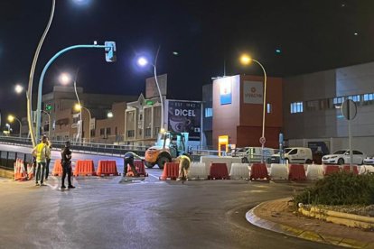 A la una y media de la madrugada continuaban los trabajos junto al supermercado Lidl.