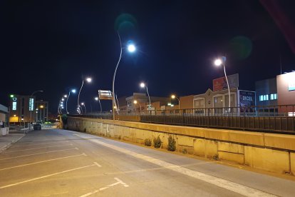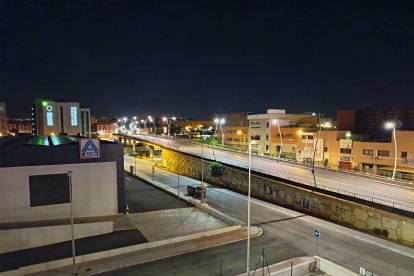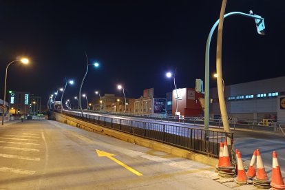 Noche cerrada en Almería, como cerrado quedó el puente de la Avenida del Mediterráneo.