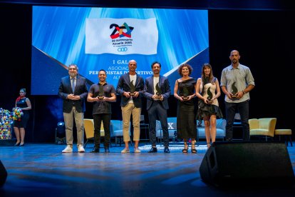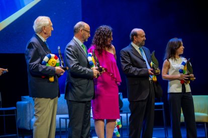 Tito Sánchez, director de DPB Media Comunicación; Antoñita, Alex, Lidia y María, familiares de Ambrosio Sánchez, periodista que daba nombre a uno de los premios entregados.