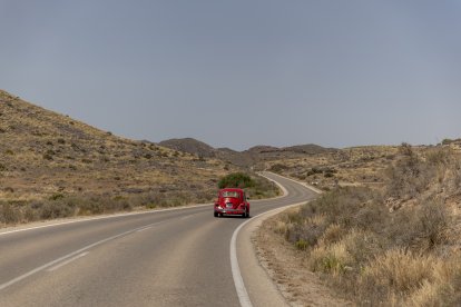 Hoy es el día internacional del Volkswagen Escarabajo y los amantes de estos vehículos se han reunido en Almería para lucir sus coches en una ruta que les ha llevado desde el estadio de la UD Almería a Las Salinas de Cabo de Gata, Los Escullos y el Pozo de los frailes.
