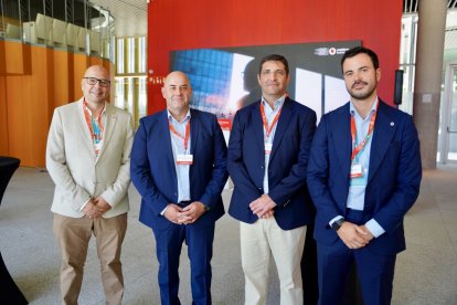 Pedro Gilabert, de Vodafone España; Francisco Javier Fernández, de Gransolar; Jordi Vega, de Gransolar; y Antonio Jiménez, de Vodafone España.