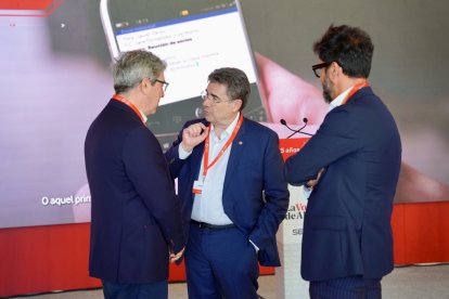 José Miguel García, CEO de Vodafone España; Sergio Pérez, director general de Cajamar; y Pedro M. de la Cruz, director de LA VOZ.