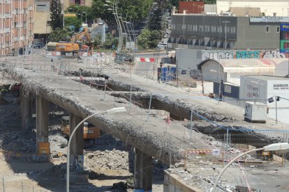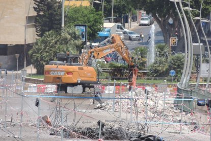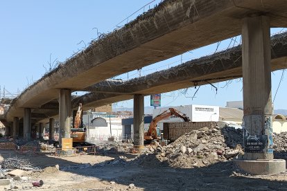 Las obras para desmantelar el puente que salvaba las vías del ferrocarril en la Avenida del Mediterráneo entran ya en su cuarta semana. Un tiempo de trabajos sin descanso para que, poco a poco, a través de las cizallas y el martillo, se vayan eliminando los kilos y kilos de hormigón armado que conformaban esta infraestructura de los años ochenta.