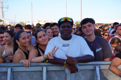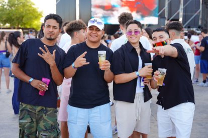 Un grupo de amigos posa para la cámara de LA VOZ mientras espera el concierto de Morad.
