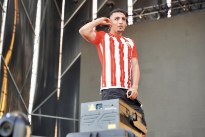 La fiesta continuó con el cantante Morad, que apareció sobre el escenario con una camiseta de la UD Almería y cantó sus temas más conocidos.