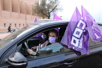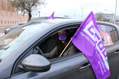 Mª Luisa González, secretaria de la Mujer de CCOO, leyendo el manifiesto.