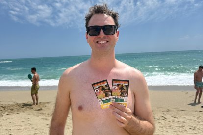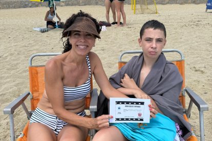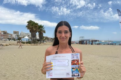 Alejandra, llegada de Logroño, junto a su bono para el chiringuito Sol y Playa de Carboneras.
