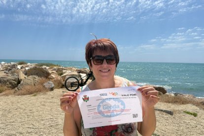 Paqui, de Francia pero reside en Garrucha, con su bono para el chiringuito Costa Tranquila en San Juan de los Terreros