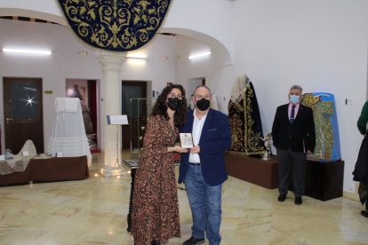 La hermana mayor del Prendimiento y el consiliario con representantes cofrades capitalinos.