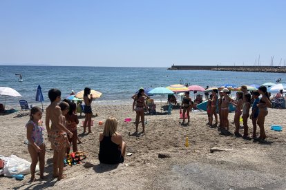 Los más pequeños de la playa de Roquetas disfrutando con las monitoras de Decroly Kids.