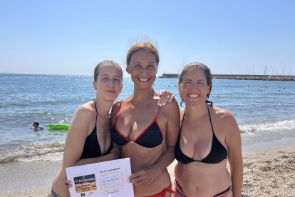 Dara, Gema y Fátima vienen de Colombia y Lisboa para disfrutar de la playa de Roquetas.