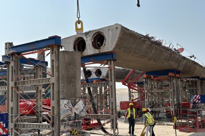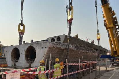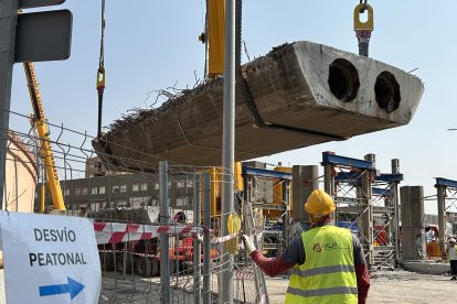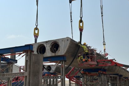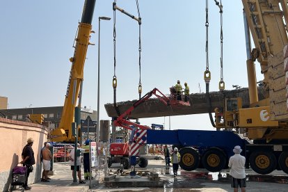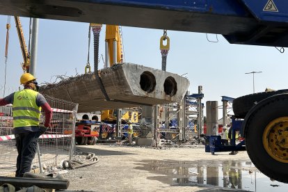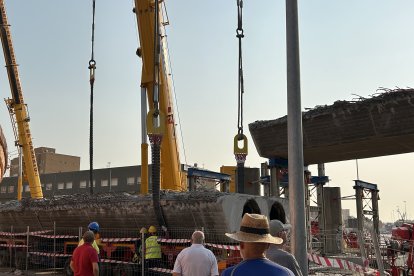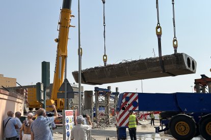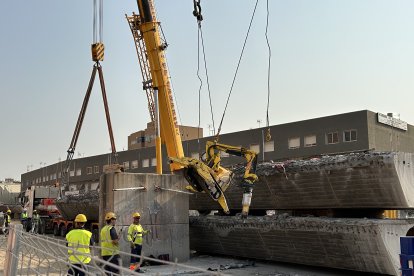 Ya se han retirado varios bloques del puente y las obras -gracias al refuerzo de una grúa extra- están acelerando cada vez más el desmontaje de la estructura. Los primeros bloques, tal y como informó este periódico, se retiraron el pasado jueves y, desde entonces, la cantidad de piezas desmontadas -de varias toneladas de peso- ronda la decena. Se está realizando con una grúa de varias toneladas y grandes dimensiones que, gracias a un contrapeso y su anclaje al suelo, consigue levantar con cuerdas y anclajes los bloques que hasta ahora componían el simbólico puente de la Avenida del Mediterráneo.
