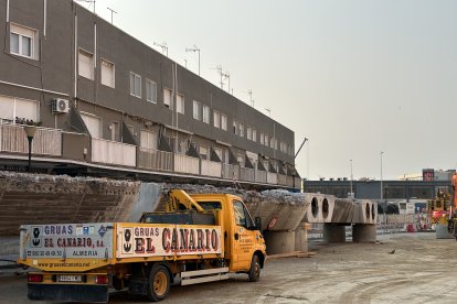 El puente de la Avenida del Mediterráneo se deshace poco a poco. Lo está haciendo bloque por bloque y bajo las miradas de los vecinos y viandantes de la zona, que ven cómo una de las señas de identidad de su barrio tiene los días contados. Las obras han acelerado su ritmo y este miércoles se han retirado los bloques a la altura de la Avenida de Monserrat, que ya se encuentra casi despejada y prevé abrir su tráfico a partir de este viernes, con motivo de la Feria de Almería.
