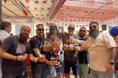 Juli, Paqui, Merchi, Encarni y Juana brindan por su amistad durante la Feria del Mediodía.