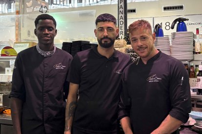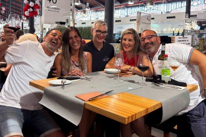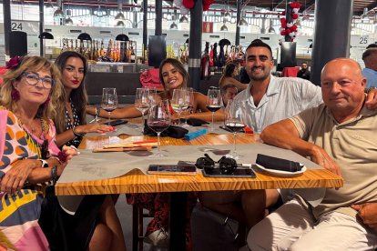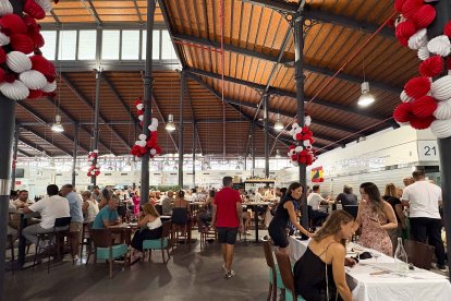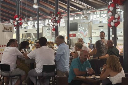 Familias y amigos disfrutan de la mejor sobremesa en el lugar de moda del Mercado Central en este primer día de feria