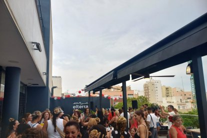 La terraza de El Terrao repleta de gente celebrando el primer sábado de feria.
