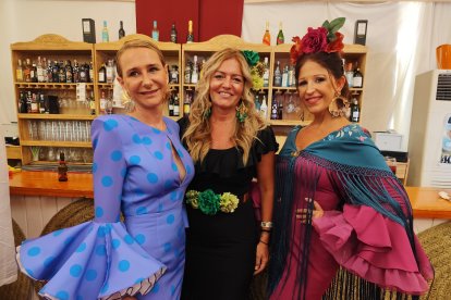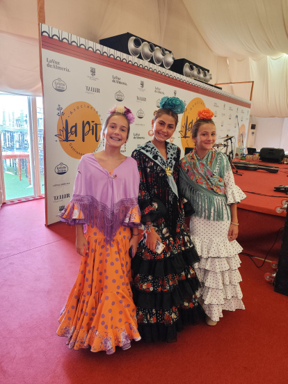 Elena, Julieta y Alejandra, amigas de Almería, lucen sus trajes de flamencas con orgullo.