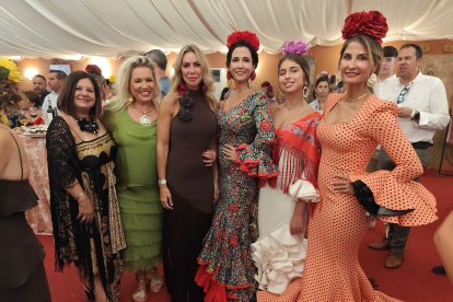 Cristina Murcia, María del Mar Díaz, Charo Rodríguez, Mercedes Beltrán y Carmen Morales, guapísimas con sus trajes de flamenca.