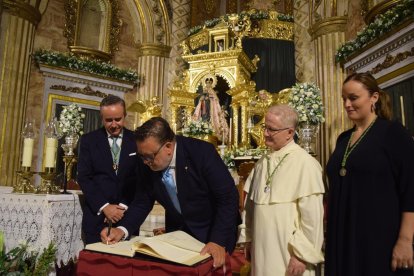 La Hermandad de la Virgen del Mar, patrona de Almería, ha vivido el pistoletazo de salida de los cultos patronales de agosto. Y lo hacía de una forma especial: primero, con el primer día de septenario, presidiendo la misa Ramón Garrido Domene y amenizada por Luis Craviotto. Y, posteriormente, uno de los platos fuertes de esta Feria de Almería de 2025: el pregón en honor a la Virgen del Mar a cargo del periodista de LA VOZ y SER Almería Alfredo Casas López, presentado por el hermano mayor del Perdón, Juan Francisco Escámez Trujillo.