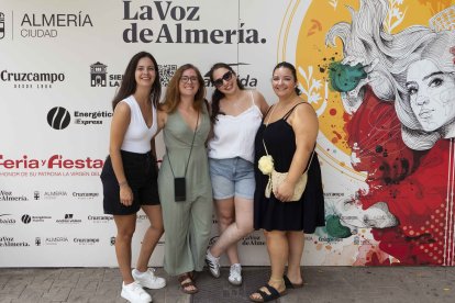 Antonio, Patricia, Blanca, Elisabeth y Herminia están felices de vivir esta semana de Feria en Almería y de tomarse una foto en el 'photocall' de LA VOZ.