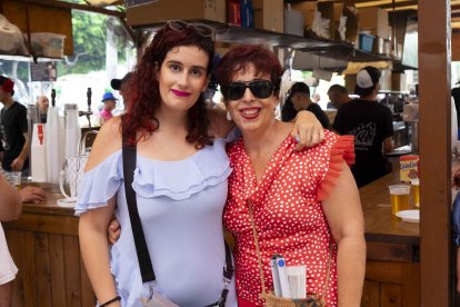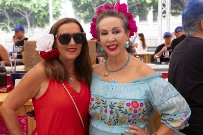 Josefina Ortiz y Ana Morel, una de las últimas bordadoras artesanales de Almería, en el ambigú La Clásica, viviendo la Feria del Mediodía.